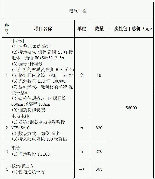 3.質量要求:合格。應符合現行國家或行業(yè)有關規(guī)定、標準、規(guī)范的要求。 4.本項目最高報價不得高于56000元(含稅,開具增值稅專用發(fā)票),項目驗收合格后請乙方開具相應的增值稅專用發(fā)票,若發(fā)票無法報銷與甲方無關。 5.項目工期:15日歷天。 二、 投標人資格要求及審查辦法 1.投標人資格要求 (1)投標申請人須在中華人民共和國合法注冊、具有獨立法人資格,營業(yè)執(zhí)照經年檢有效。 (2)本招標項目要求投標人是莆田城市園林發(fā)展集團有限公司招標采購庫內的企業(yè)。 (3)投標人提供的相應證明材料復印件均應符合:內容完整、清晰、整潔,并由投標人加蓋其單位公章。 2.中標方式采用 低價中標法 。 投標人應根據招標要求自行報價,投標報價不得高于控制價,超過最高限價為無效報價,本項目單價報價最低即為中標單位,若單價最低價報價相同,我單位會另行通知相關部門進行隨機抽取1家中選單位。投標人的投標報價應包含招標所要求的可能發(fā)生施工費用(含現場施工人員安全、不可預見費)以及應由投標人支付的稅金等一切費用。 三、 投標文件的遞交 1.各單位在規(guī)定截止時間前,在莆田城市園林發(fā)展集團招標采購網(http://stbiu.com.cn/ztb.html)線上報價和上傳公開詢價報價表(須加蓋公章),無加蓋公章或材料不齊全,視為無效報價。 2.截止時間:2023年2月27日上午11點整。 四、 違規(guī)處理 中標后,拒絕按中標價格承接業(yè)務、不得以任何理由拒絕承接應急采購項目、未在通知要求時間內不與發(fā)起部門簽訂合同,導致項目建設進度滯后或影響材料供應,3年內取消申請入庫資格。 五、 聯系方式 聯系人:朱工 聯系電話:0594-2259188 附件1:公開詢價報價表/upload/202302/24/202302241648471337.xlsx 附件2:路燈參照樣圖/upload/202302/24/202302241648571494.png 莆田市綬溪建設開發(fā)有限公司 2023年2月24日