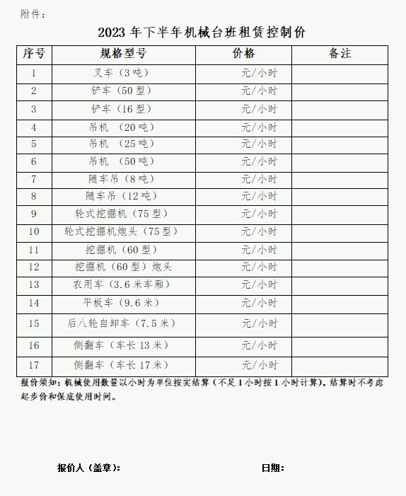 莆田城市園林發(fā)展集團(tuán)有限公司關(guān)于2023年下半年機(jī)械臺(tái)班租賃控制價(jià)征集公告