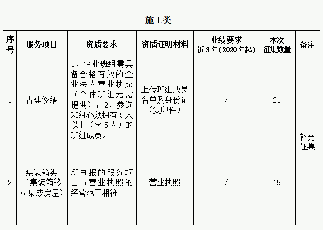 莆田城市園林發(fā)展集團有限公司 關(guān)于2023年供應(yīng)商名錄庫第三批征集公告 為擴大供應(yīng)商資源、優(yōu)化名錄庫管理,進一步提高招標采購工作效率及名錄庫利用率,提升供應(yīng)商服務(wù)質(zhì)量水平,現(xiàn)繼續(xù)開展征集工作。 一、征集類型及范圍 (一)2023年第一批及第二批供應(yīng)商名錄庫征集類型數(shù)量未達30家,本批將繼續(xù)征集。 (二)根據(jù)工作需要,新增類型: 服務(wù)類:耕作層土壤剝離實施方案編制單位
